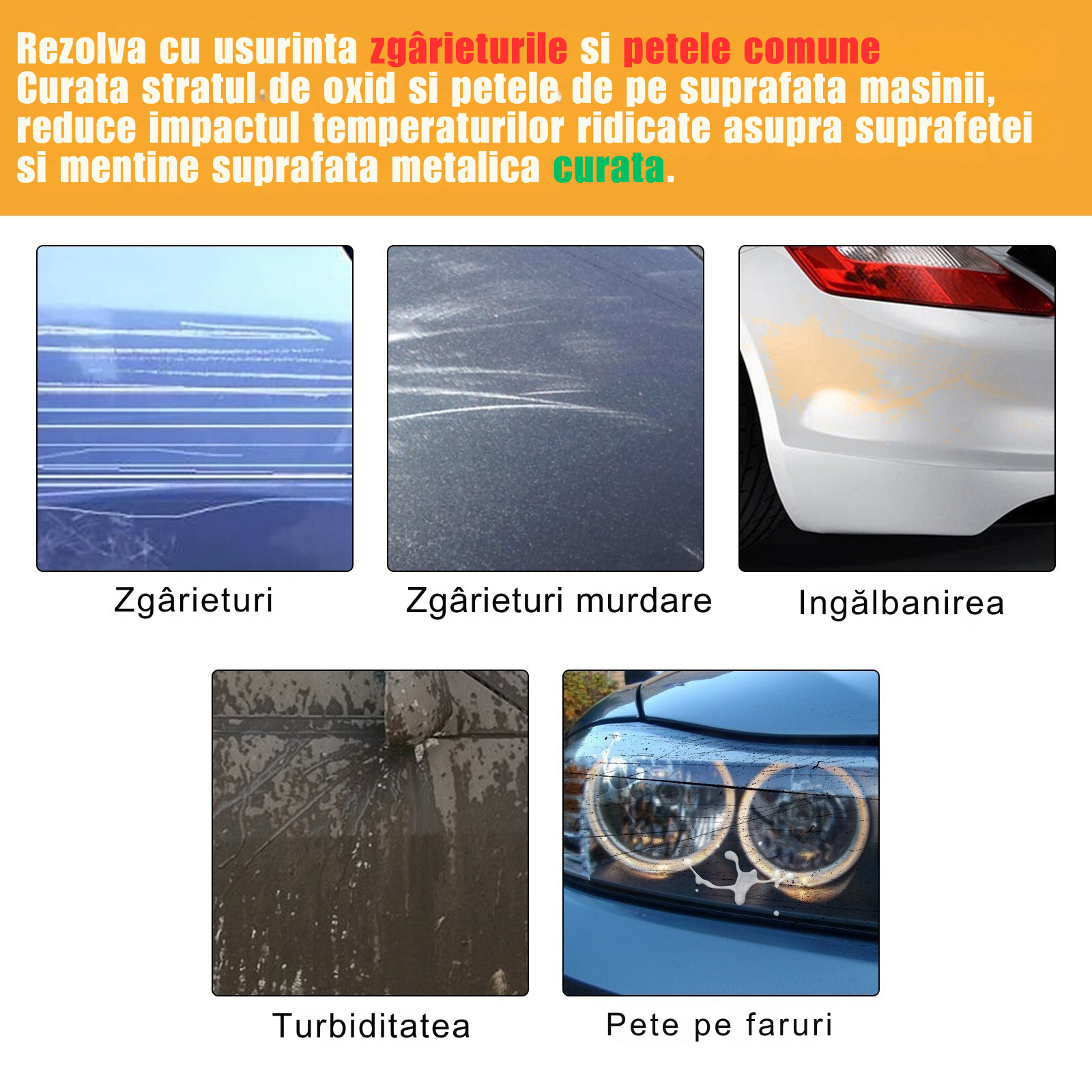 Kitul conține soluții speciale și instrumente care curăță, umplu și uniformizează stratul superficial al vopselei. Acesta ajută la mascarea zgârieturilor fine și redă luciul caroseriei.